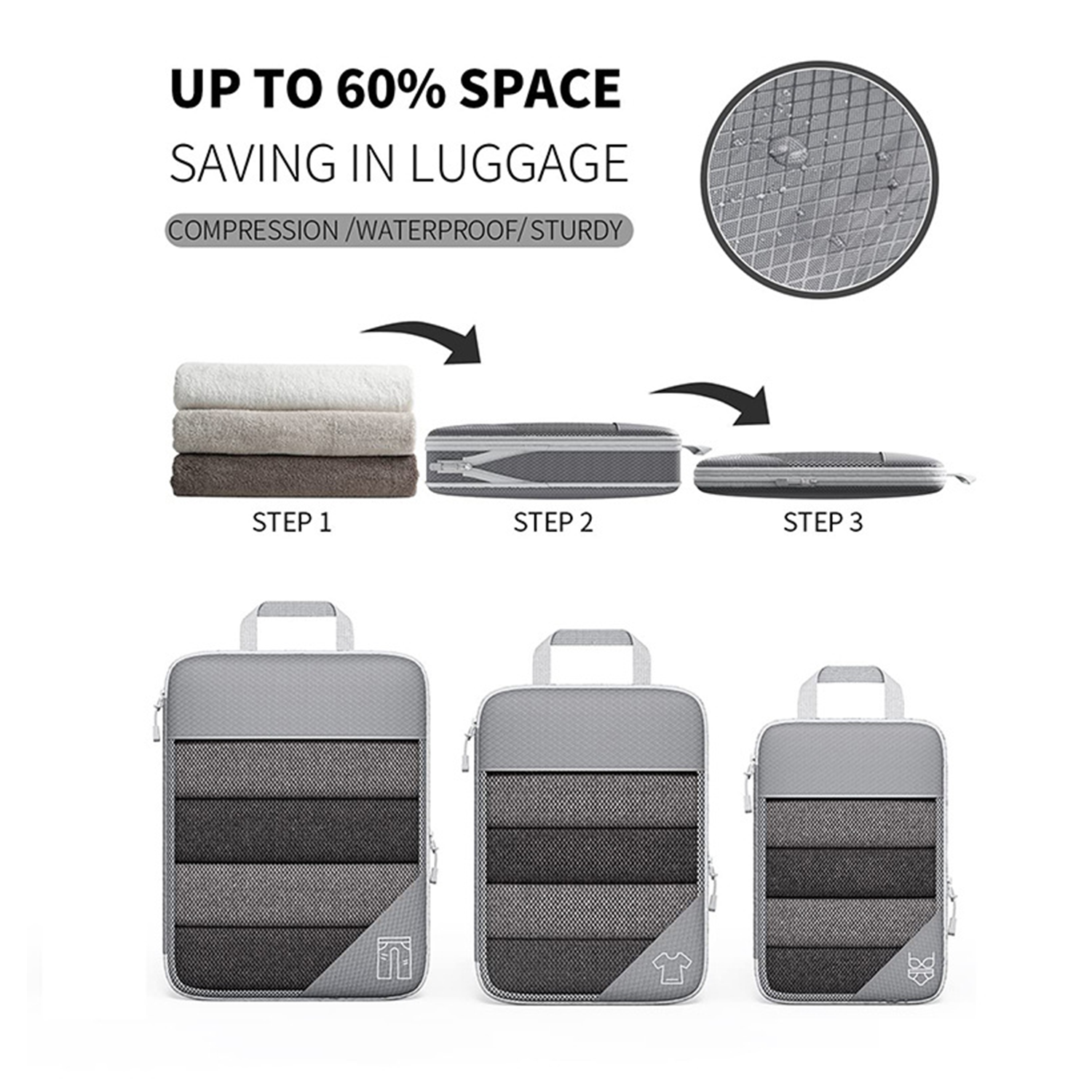 3PCS Compression Packing Cube Set Expandable Mesh Travel Bag