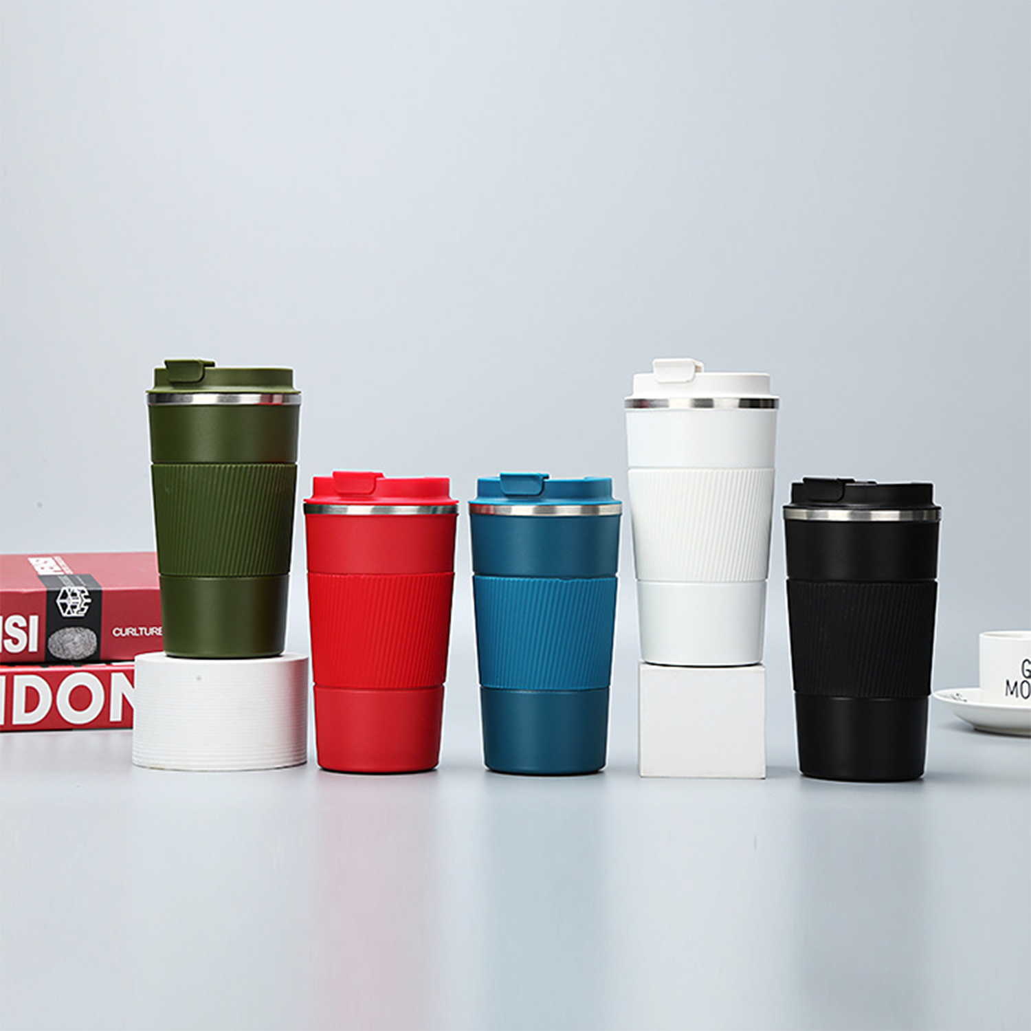 Reusable Coffee Cup with Silicone Lid and Sleeve