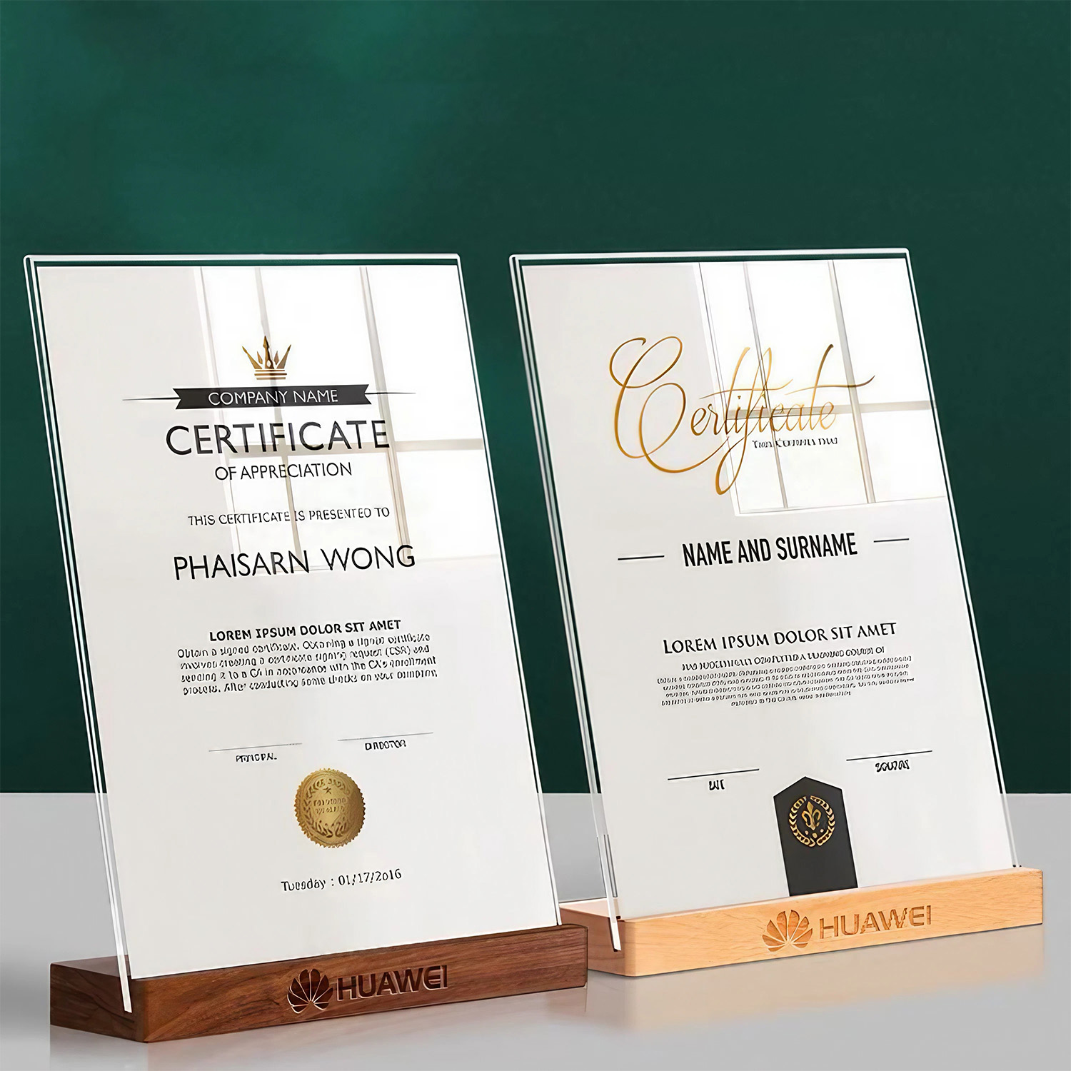 A4 Acrylic Certificate Photo Frame with Wood Base