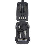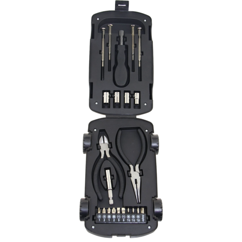 This 22-piece car-shaped tool set is designed for convenience and portability, perfect for small repairs and maintenance. The tool set includes 4 sockets (7mm, 8mm, 9mm, 10mm), 10 screwdriver bits, needle-nose pliers, diagonal pliers, an extension rod, a handle, and 4 precision screwdrivers. The tools are housed in a sturdy ABS plastic case shaped like a car, making it a unique and stylish storage solution. Measuring 5.1 x 3 x 8.3 inches, this tool set is ideal for car enthusiasts, home use, or promotional gifts