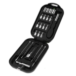 This compact 22-piece suitcase-shaped tool set is both stylish and functional, making it ideal for home repairs or on-the-go projects. It includes 4 sockets (7mm, 8mm, 9mm, 10mm), a utility knife, an extension rod, 4 precision screwdrivers, 11 screwdriver bits, and a screwdriver handle. The suitcase-shaped case measures 7.1 x 4.1 x 1.6 inches, making it easy to store and carry. Perfect for DIY enthusiasts or as a promotional gift, this set combines a sleek design with practical functionality.
