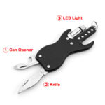 Made of durable stainless steel, it features a compact design measuring 1.41 x 3.54 inches and weighs just 1.45 ounces. The tool includes a sharp folding knife, an LED light for illumination, and a combination can and bottle opener. Its ergonomic design ensures comfortable handling, and the high-quality materials guarantee long-lasting use. Ideal for outdoor enthusiasts, handymen, and everyday carry, this tool is available in multiple colors and is perfect for both practical use and as a promotional item.