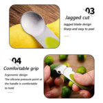 5.12×1.26″ stainless steel citrus zester & peeler with silicone handle, weighing 0.086 lbs.