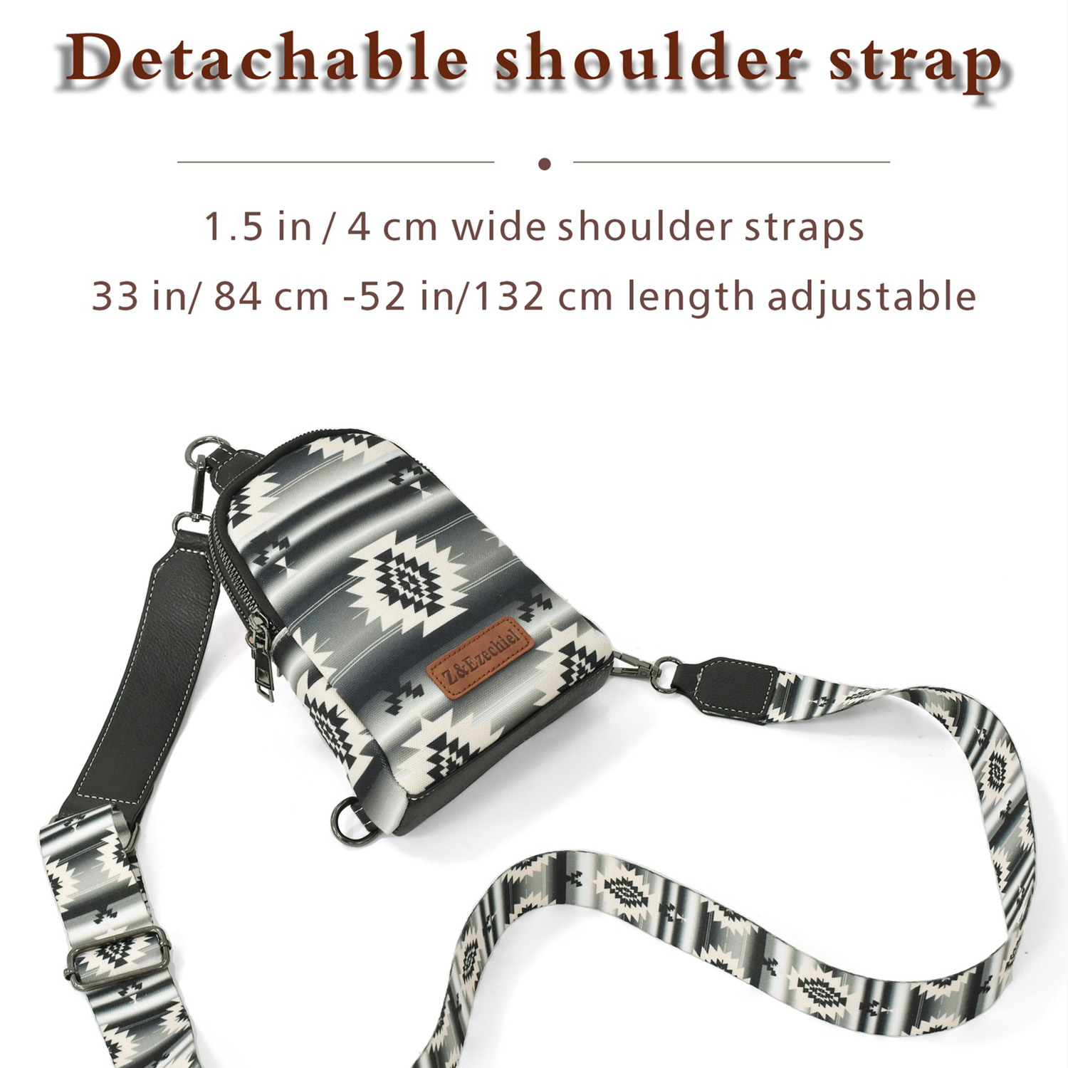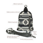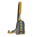 The Bohemian Canvas Crossbody Bag is a stylish and functional accessory perfect for everyday use. Made from durable canvas and polyester materials, this bag features an eye-catching ethnic and vintage design. With dimensions of 7.5 inches in height, 5.1 inches in width, and an adjustable shoulder strap ranging from 33 inches to 52 inches in length, it offers comfort and versatility. The bag includes a secure zipper closure, hidden back pockets, and sturdy metal accessories, ensuring both style and practicality. Weighing only 0.61 lbs, it is lightweight yet spacious enough to hold essentials like sunglasses, phones, and small personal items.