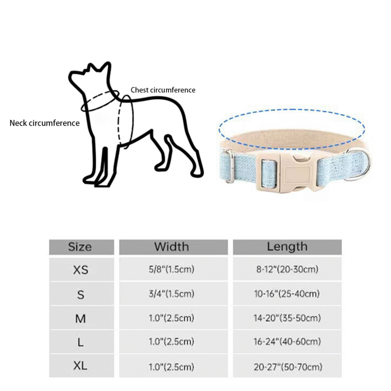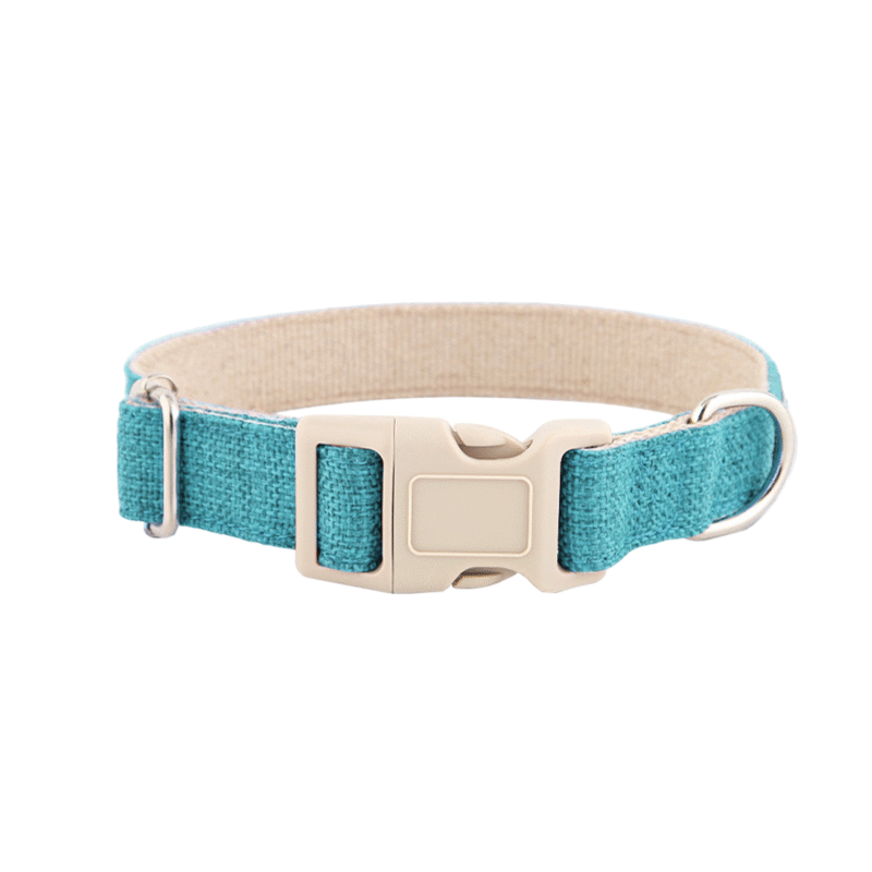 This eco-friendly dog collar combines style and sustainability, made from a durable blend of linen and cotton. Its soft, breathable material is gentle on your pet’s skin while offering excellent durability and color retention. The collar features an adjustable plastic buckle and a secure D-ring for leash attachment, ensuring a comfortable and reliable fit. The understated, solid colors make it a versatile accessory for daily wear or special occasions.
