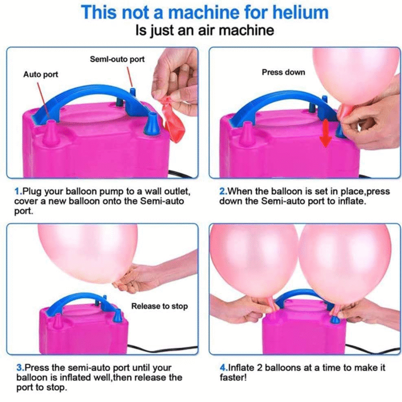 This user-friendly balloon pump machine offers both manual and automatic pumping modes with a fast but consistent inflation rate to prevent your balloons bursting. Handy wire storage keeps the cable tidy, preventing falls or accidents when the pump is not being used. Inflate different sized balloons thanks to the practical dual-nozzle design. Simply attach your balloon and choose your inflation mode!
