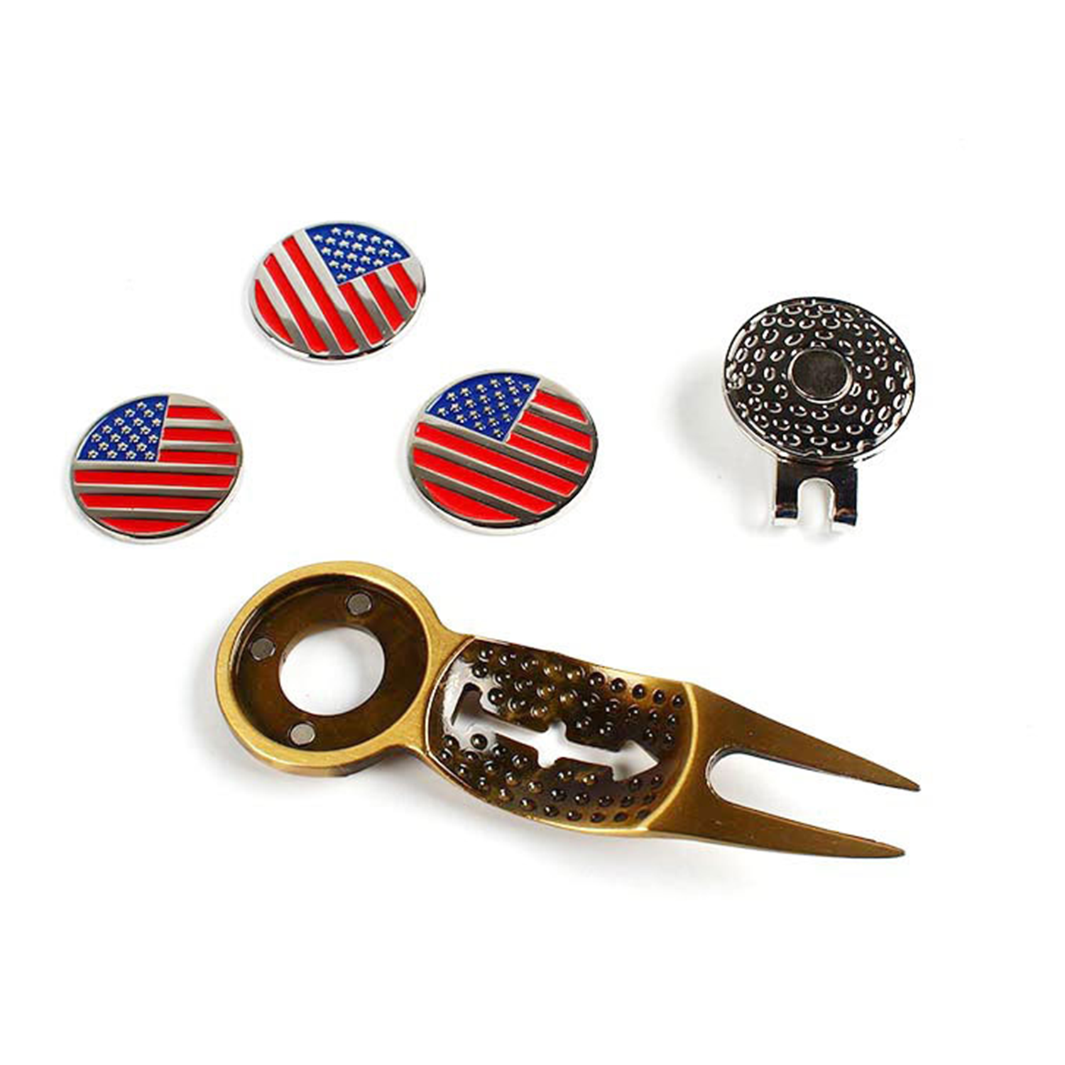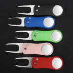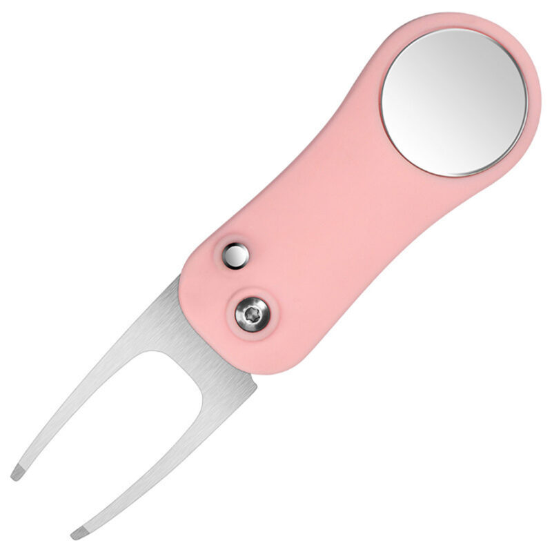 This foldable golf divot tool features a durable 420 stainless steel fork and an ergonomic ABS handle for comfortable grip. Designed with a one-touch release button for quick blade deployment and a built-in magnetic ball marker, it offers convenience and efficiency on the green. Ideal for golf tournaments, giveaways, or corporate events, with three imprint areas for customization. Measures 4.49 inches when open and folds to a compact 2.91 inches. Available in black, blue, red, green, and pink. Each piece comes individually packaged in a box.