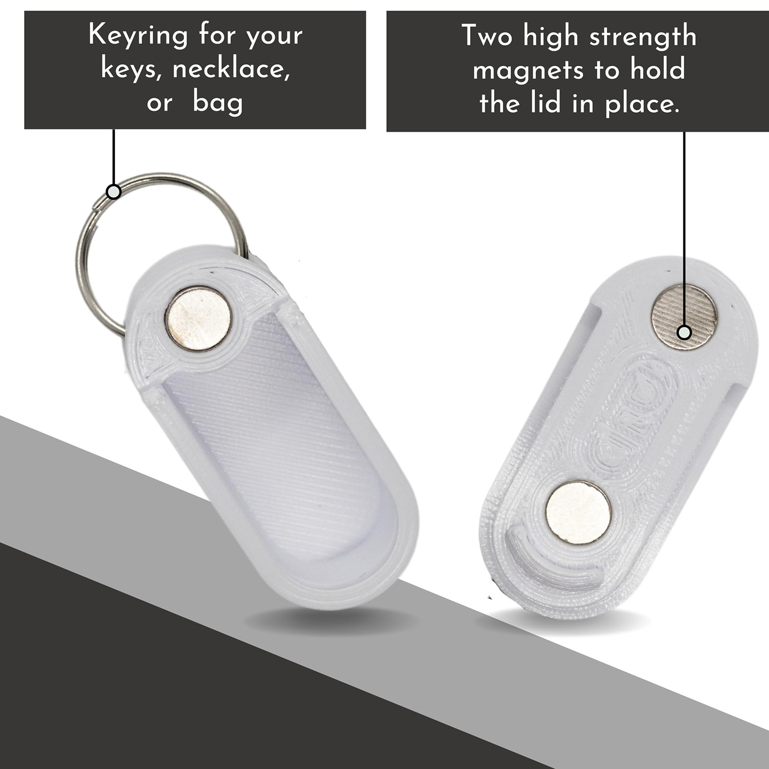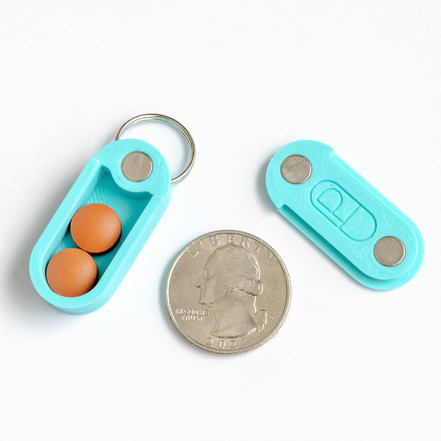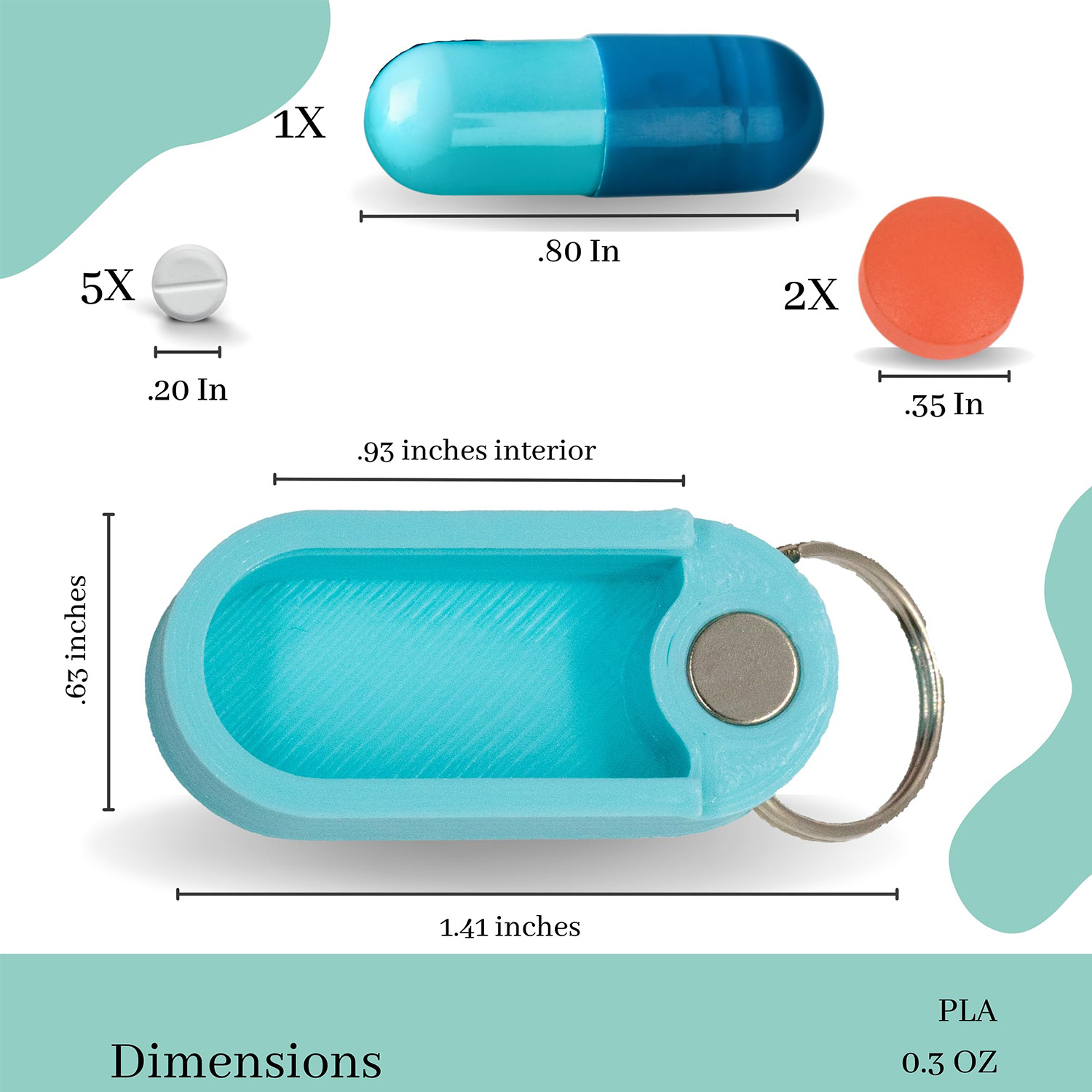 This compact pillbox keychain is a practical and discreet solution for carrying essential medication on the go. Made from durable plastic and available in four vibrant colors – pink, blue, white, and black – it’s designed to easily attach to keys, bags, or necklaces, ensuring your pills are always within reach. The pillbox features a magnetic slide opening, providing secure and easy access without the hassle of traditional caps. With dimensions of 0.63 x 1.41 inches and weighing a mere 0.02 pounds, it’s the perfect size for a daily supply of pills, making it an ideal promotional item for healthcare events, pharmacies, and wellness programs.