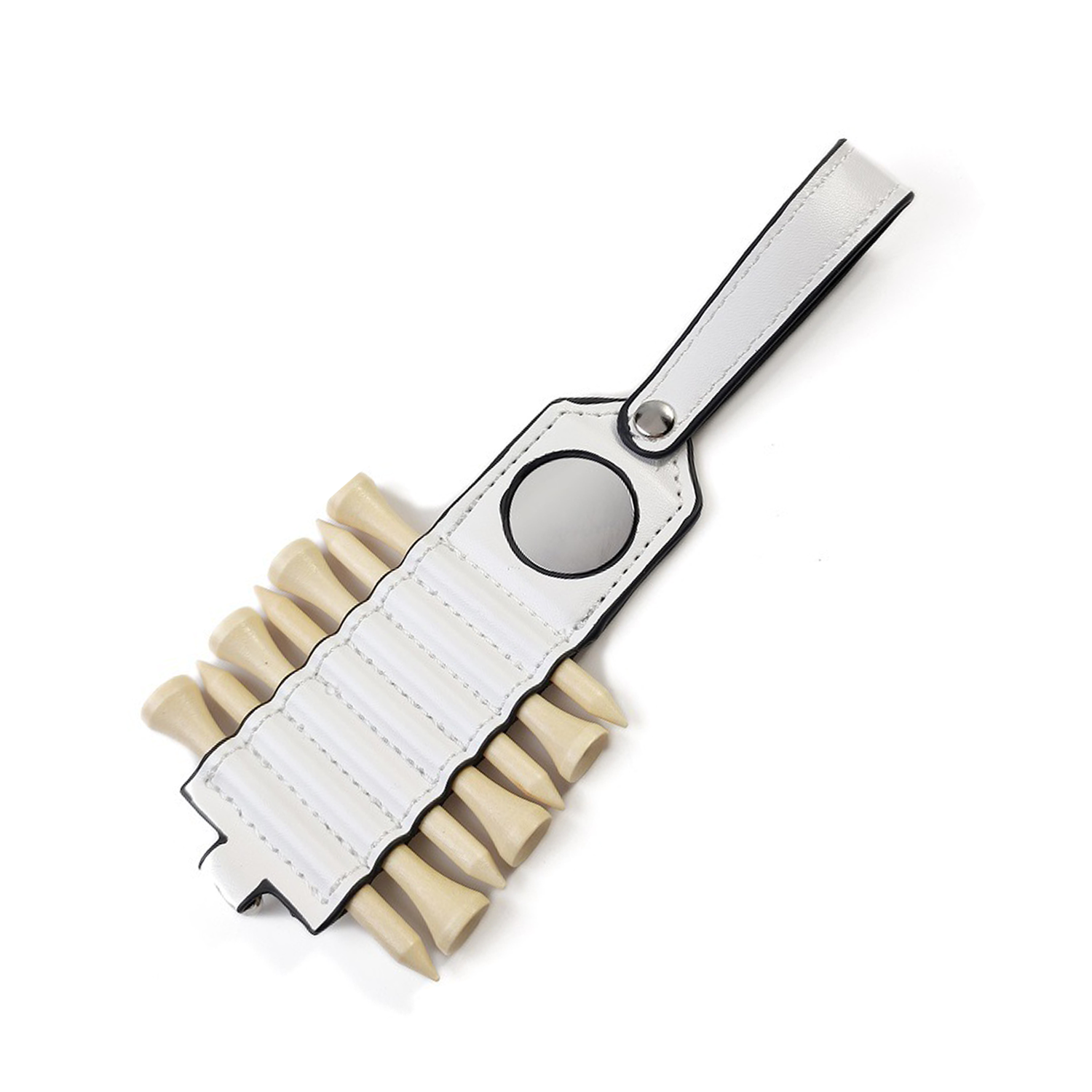 Made from high-quality, wear-resistant leather, it securely holds up to 7 golf tees and a golf marker. Its vibrant colors ensure easy visibility on the lawn, while the compact design allows for convenient attachment to your golf bag. This holder provides consistent tee height and keeps the ball stable for perfect shots.