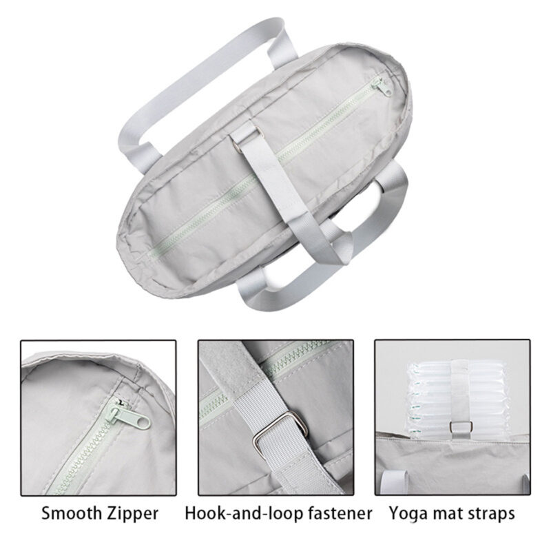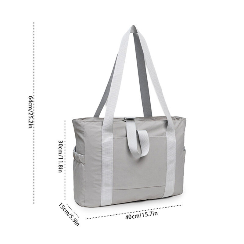 This versatile tote bag is designed for active lifestyles, offering a perfect blend of style and functionality. Made from durable nylon material, the bag measures 15.7 x 11.8 x 5.9 inches, providing ample space for all your essentials, including a yoga mat, laptop, and other personal items. The bag features multiple compartments and inner zipper pockets to keep your belongings organized and secure. A smooth zipper, hook-and-loop fastener, and yoga mat straps add to its convenience. Available in multiple colors, this tote is ideal for gym-goers, travelers, and everyday use.