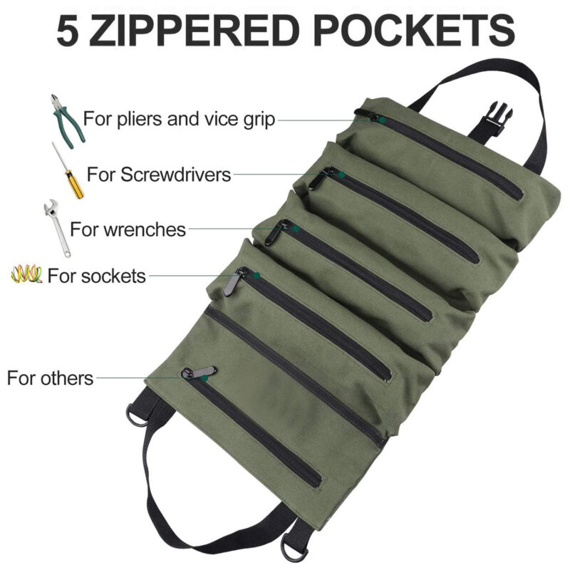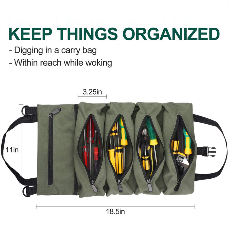 Keep your tools neatly arranged and easily accessible with our Multi-Purpose Tool Roll Up Pouch Bag. Designed for versatility, this organizer comes in black, green, yellow and blue, measuring 18.5″ x 11″ x 1.18″ with a light net weight of just 9.52 oz. It’s perfect for storing a variety of tools and can be effortlessly converted into a hanging car organizer, maximizing space and keeping essentials within reach.