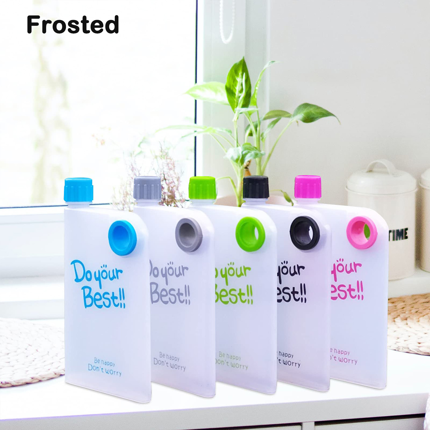 A sleek and portable solution for your daily fluid intake. With a 380ml capacity, this reusable water bottle is available in both frosted and clear styles, offering a variety of color options to match your personal taste. Choose from six vibrant colors in the clear variety or five hues in the frosted type to brighten your hydration routine. The ultra-thin design is perfect for on-the-go use, sliding effortlessly into bags or alongside books and laptops. It’s crafted from durable materials like PP, AS, and silicone, ensuring a tight seal with its threaded design and a silicone ring for a comfortable carry and leak prevention. Packaged in an attractive color box, this flask makes a great gift or a stylish personal purchase.