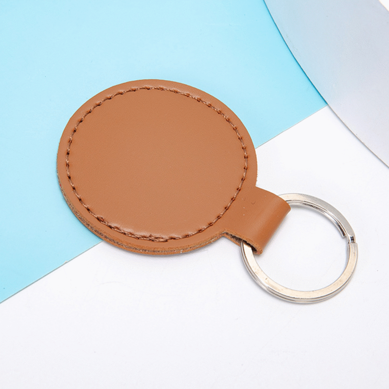 Measuring 2 inches in both diameter and height, this keychain is crafted from high-quality PU leather, offering durability and a sleek look. Its compact and lightweight design makes it perfect for everyday use, whether attached to your keys, bags, or other accessories. Ideal for promotional gifts, corporate events, and personal use.