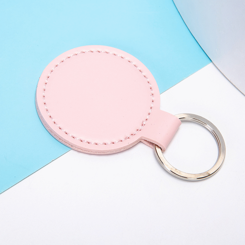 Durable PU leather keychain, 2-inch round design, available in multiple colors, perfect for keys and bags.