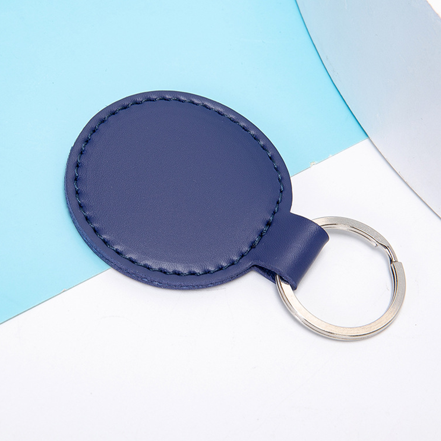Durable PU leather keychain, 2-inch round design, available in multiple colors, perfect for keys and bags.
