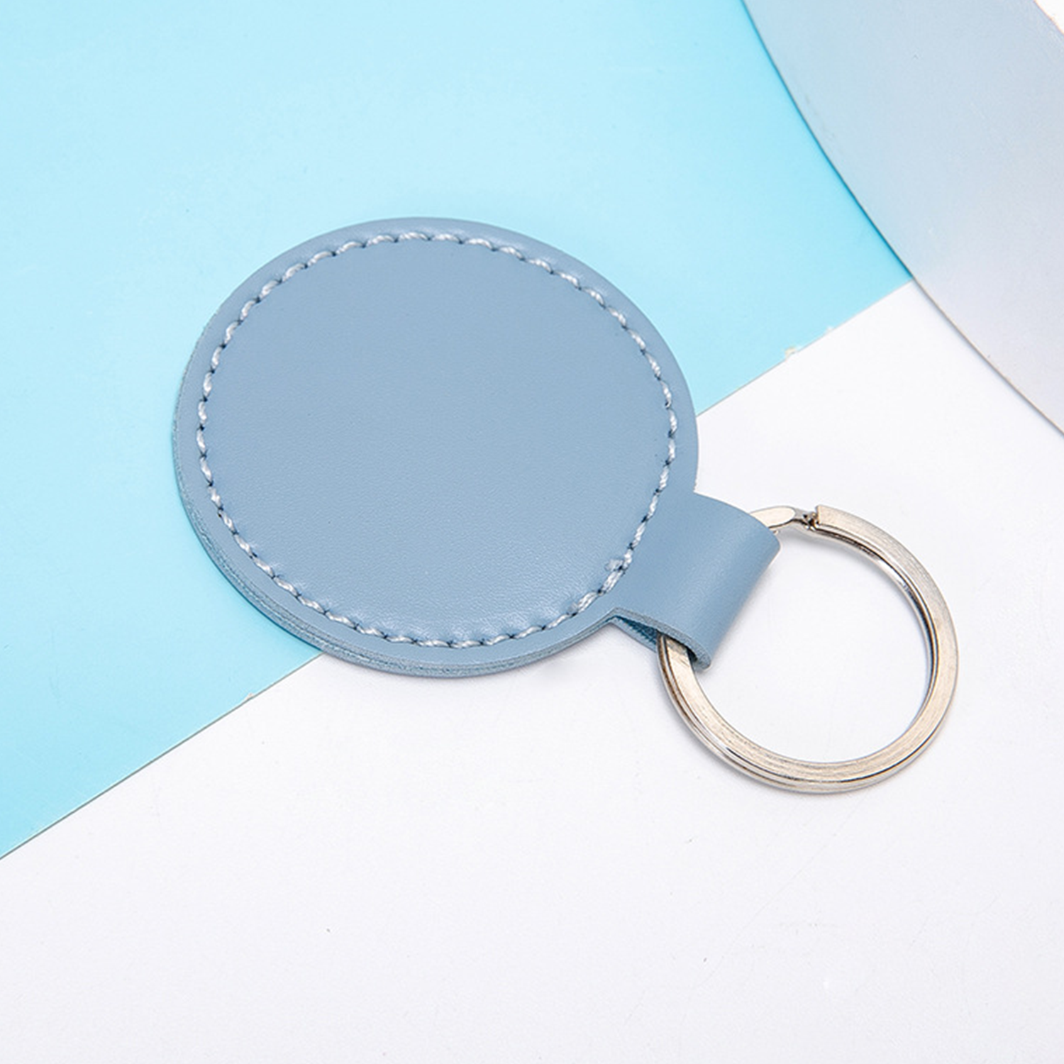 Round PU Leather Keychain