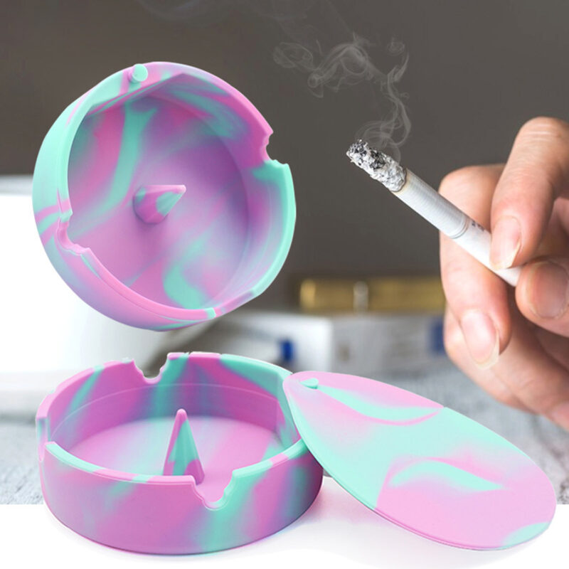 This silicone ashtray with a lid is designed to keep cigarette ashes and smoke residue contained, ensuring a cleaner and more aesthetically pleasing environment. Its flexible, shatterproof construction can withstand high temperatures up to 230 C and is dishwasher-safe for easy cleaning. Featuring three distinct grooves, it accommodates cigarettes, cigars, and pipes, while a central cleaning column simplifies pipe maintenance. The smooth lid is easily operated with one hand, making it a convenient and stylish addition to your smoking space.