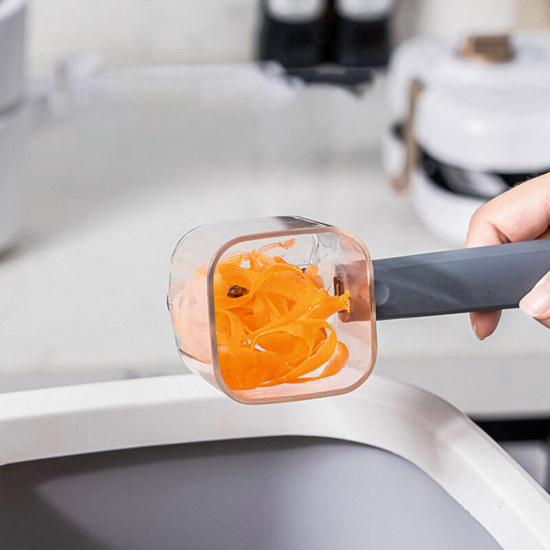 The Multi-Use Veggie Peeler is a must-have kitchen gadget that simplifies your cooking prep work. With dimensions of 20 cm in length and a peeling chamber of 6.5 cm by 6 cm, this compact peeler is perfect for creating delicate garnishes and peeling a variety of vegetables. Constructed from durable ABS, TPR, and PC materials, it features a serrated blade for easy peeling and a clear chamber to catch peels, reducing mess. The peeler includes a lid for storage and can be conveniently hung on the wall, saving valuable counter space. It’s designed for comfort, safety, and is easy to clean, making it an indispensable tool for any home cook.