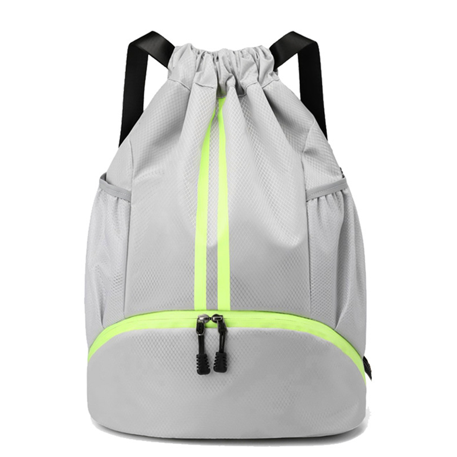 The bag includes a spacious main compartment with a dry and wet separation system, perfect for storing both clean and wet items. An independent shoe pocket at the bottom keeps footwear separate from other belongings, additional features include side mesh pockets for water bottles or umbrellas. Perfect for promotional events, schools, and training courses, it can be customized to meet specific branding needs.